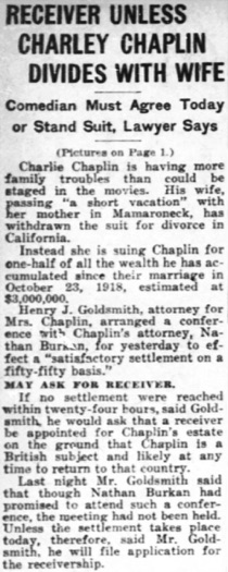 „RECEIVER UNLESS CHARLEY CHAPLIN DIVIDES