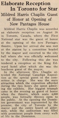 Mildred Harris Chaplin Guest of Honor at Opening of New