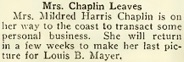 Mrs. Mildred Harris Chaplin is on her way to the coast