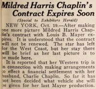 & Mildred Harris Chaplin‘s Contract Expires Soon
