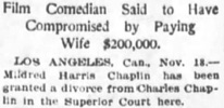 Los Angeles, Cal., Nov. 13. – Mildred Harris Chaplin has