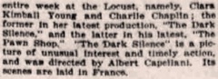 & Locust (...) Clara Kimball Young in „The Dark Silence.“ Charlie Chaplin in „The Pawnshop.“