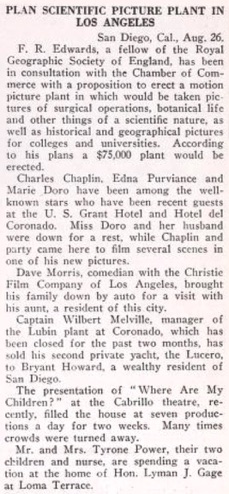 while Chaplin and party came here to film several scenes