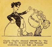 Charlie Chaplin obtained $800,000 for „The Kid“ from the Associated First National, thus establishing a new high cash record.