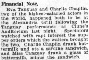 Miss Tanguay drank a glass of buttermilk, minus the sandwich.“