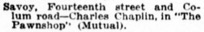 & Savoy (...) Charles Chaplin in „The Pawnshop“ (Mutual).