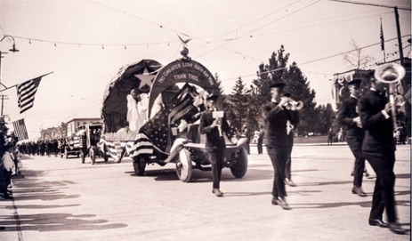 Parade at 200 North Main, Logan, about 1919, Holmgren