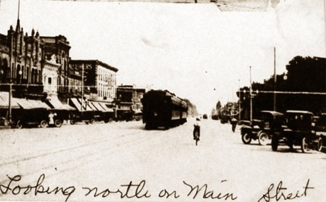 Looking North from Center and Main, Logan, about 1915,