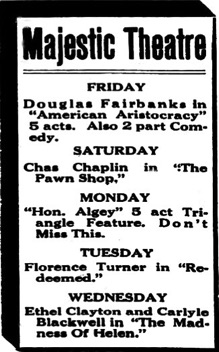 „On Saturday Charles Chaplin will be seen in The Pawnshop,