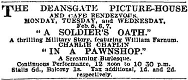 Advertisement. „THE DEANSGATE PICTURE-HOUSE“ (...)
