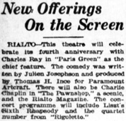 Selected by Dr. Riesenfeld as the Comedy for the Rialto