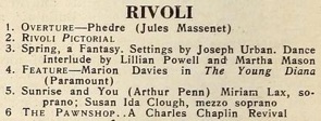 & Rivoli – Marion Davies will be seen in „The Young Diana,“