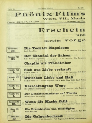 Advertisement. „Phönix Films Co., Ges. m. b. H. (...)