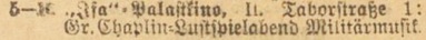 Gr. Chaplin-Lustspielabend. Militärmusik.