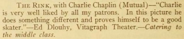 & THE RINK, with Charlie Chaplin (Mutual) – „Charlie is very