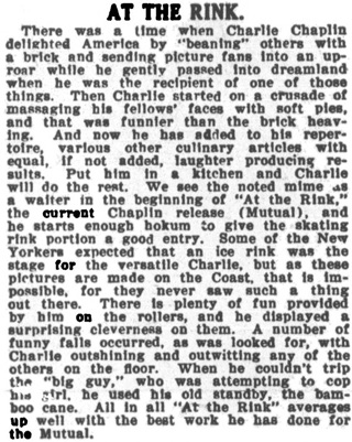beginning of At the Rink, the current Chaplin release (Mutual),