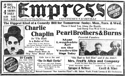 & Empress Theatre, exterior by day, marquee „Vaudeville,“