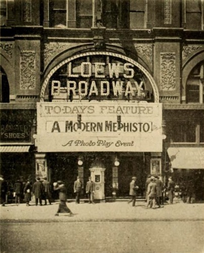 & Photograph of Loew‘s Broadway Theater, showing how Greene‘s Feature, „A Modern Mephisto,“ was advertised