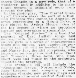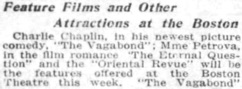 by Rialto Orch., and ,Charlie` Chaplin in The Vagabond.“