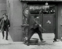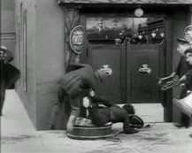 that Charlie Chaplin in „The Vagabond“ is in seven houses