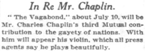 „The Vagabond,“ about July 10, will be Mr. Charles Chaplin‘s