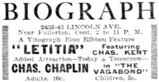 Coming Monday – Chas. Chaplin in „The Vagabond.“