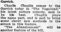 Charlie Chaplin comes to the Garrick today in The Vagabond,