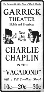 & Charlie Chaplin in The Vagabond, Garrick.