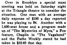 and the Pathe Weekly stated he had taken in $10,40 that day. (...)