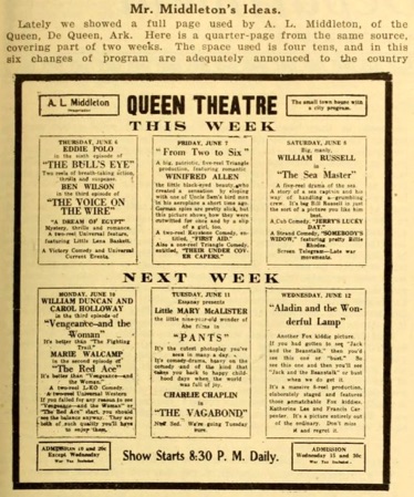 Lately, we showed a full page used by A. L. Middleton, of the Queen, De Queen, Ark. Here is a quarter-page from