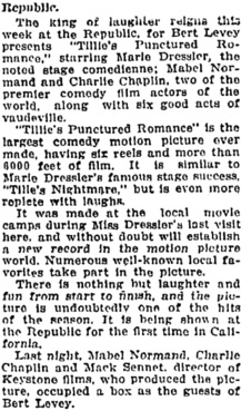 Bert Levey will present „Tillie‘s Punctured Romance,“