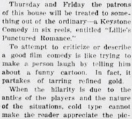 in six reels, entitled „Lillie‘s Punctured Romance.“