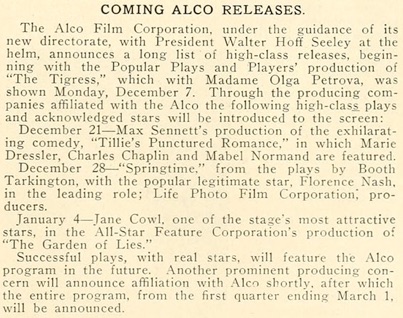 exhilarating comedy, Tillie‘s Punctured Romance, in which Marie Dressler, Charles Chaplin and Mabel Normand are