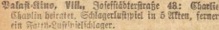 & Palast-Kino, Josephstädterstraße 48: Charlie Chaplin heiratet, Schlagerlustspiel in 5 Akten, ferner ein Fatty-Lustspielschlager.