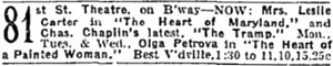 Mrs. Leslie Carter in The Heart of Maryland, and Chas. Chaplin‘s