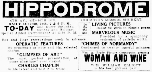Advertisement. „Hippodrome.“ (...) „Charles Chaplin in his