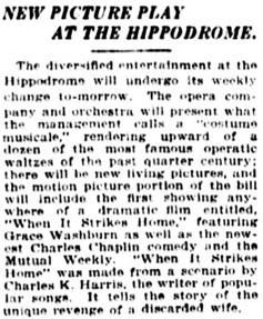 as well as the newest Charles Chaplin comedy and the Mutual Weekly.“ (...)