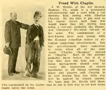 J. W. Myrtle, of the Art theater, Sta(u)nton, Va., sends