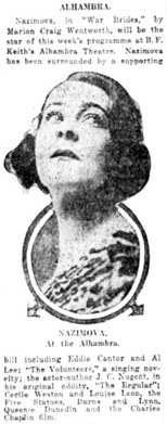 Keith‘s Alhambra Theatre. Nazimova has been surrounded