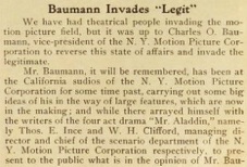 & CHARLES O. BAUMANN (New York Motion Picture Co.)