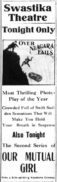 The four reel photoplay „Over Niagara Falls“ at the Swastika