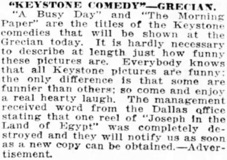 Advertisement. „,KEYSTONE COMEDY‘ – GRECIAN