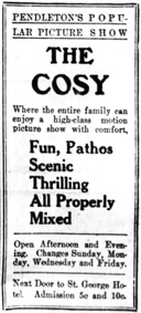 & Cosy Theater – Pendleton, Ore. C. P. Bruce, Manager.