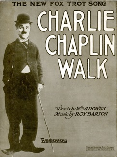 a portrait of Charles Chaplin in one of his characteristic poses,