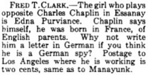 opposite Charles Chaplin is Edna Purviance. Chaplin says