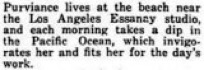 pictures are shown. Miss Purviance lives at the beach