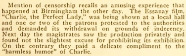 The Essanay film, Charlie, the Perfect Lady, was being shown
