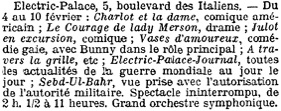 Editorial content. „Electric-Palace, 5, boulevard des Italiens. –