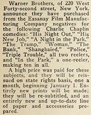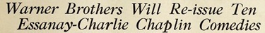 Warner Brothers Will Re-Issue Ten Essanay-