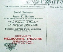 to Flavia“ – The Prisoner of Zenda Postcard from the Melbourne Theatre, Seattle, circa 1913, Puget Sound